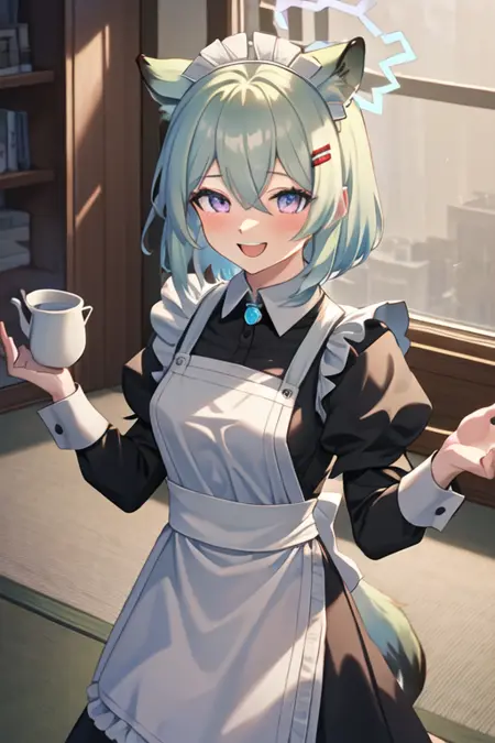 触发词为 shigure_bluearchive,精简标签为 animal_ears, halo, weasel_ears, purple_eyes, green_hair, breasts, short_hair, hair_between_eyes, blue_halo, tail, weasel_tail, medium_breasts, large_breasts。当某些特征(如发色)有时不够稳定时,您可以将这些标签添加到您的提示词中。