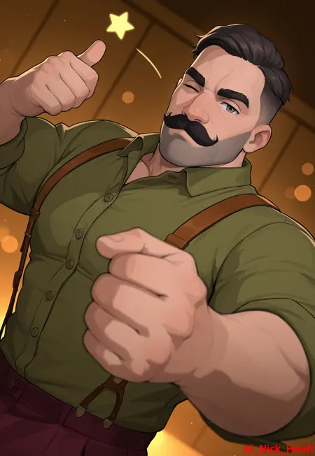 punch_up, 明显的胡子,短黑发,胡茬,剃光两侧,浓眉,灰眼睛,