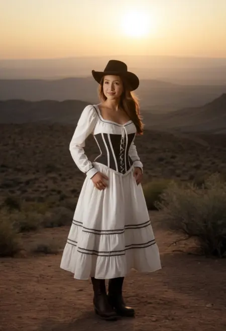 A cinematic SDXL collection capturing the essence of the Wild West through detailed fashion and evocative scenery.