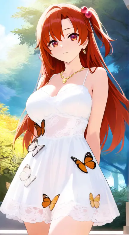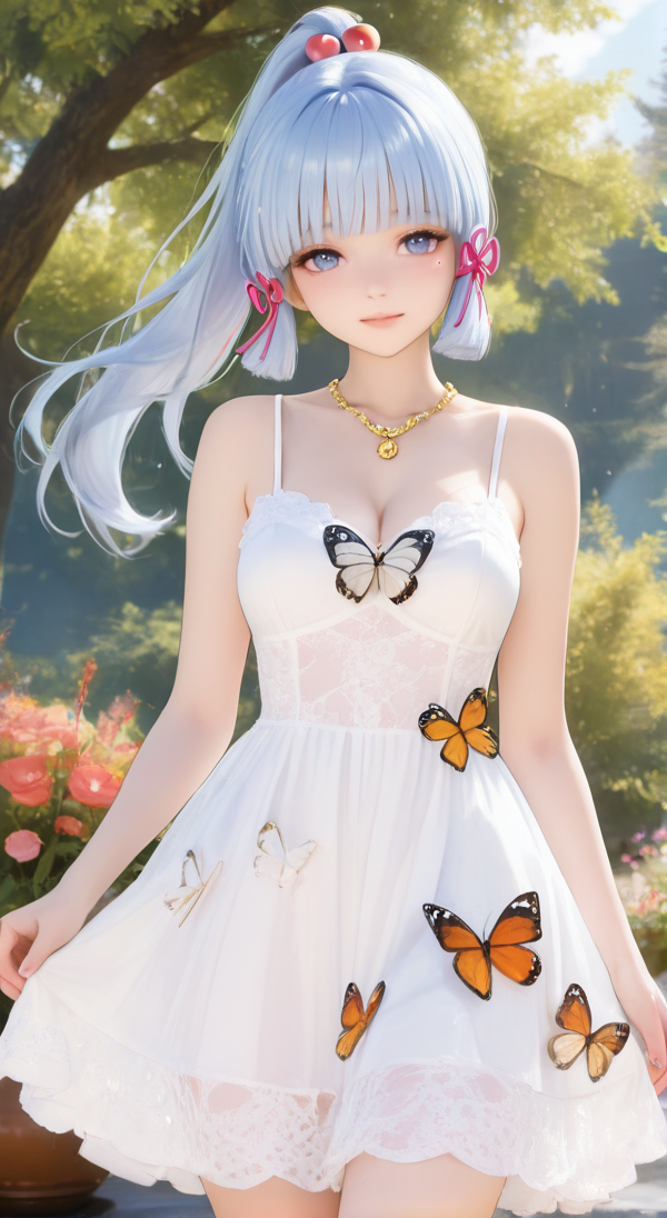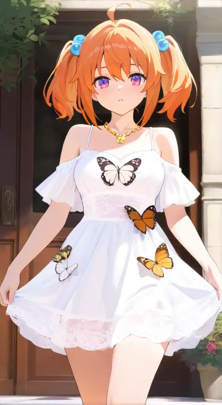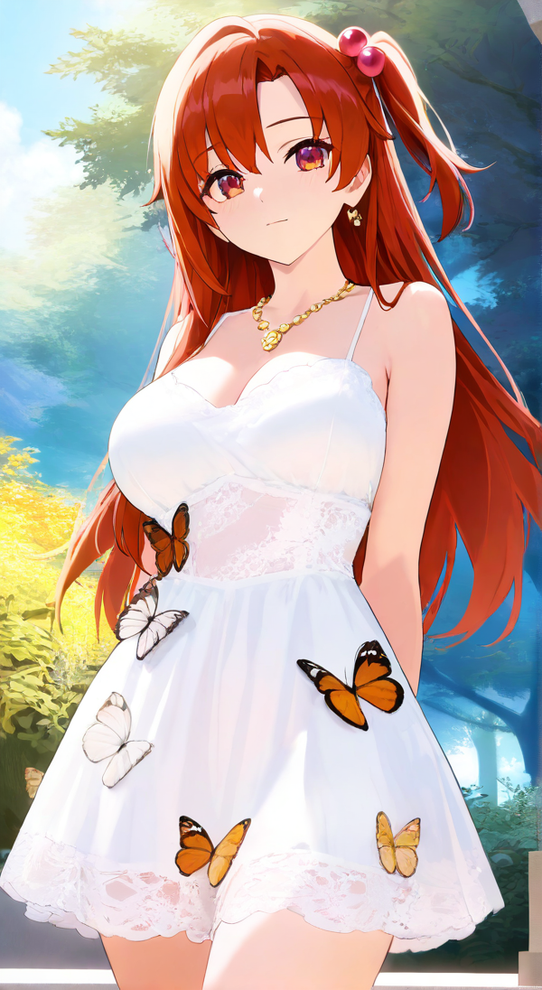 buttery_dress, dress, butterfly, white dress, jewelry, necklace
