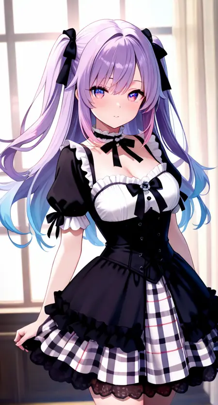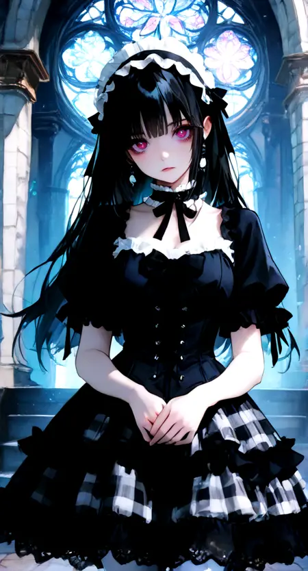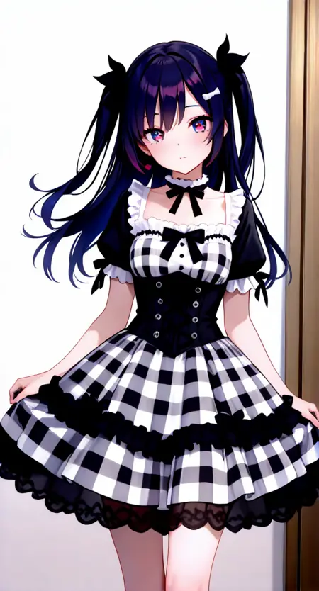 gothic-dress, short sleeves, dress, plaid, choker