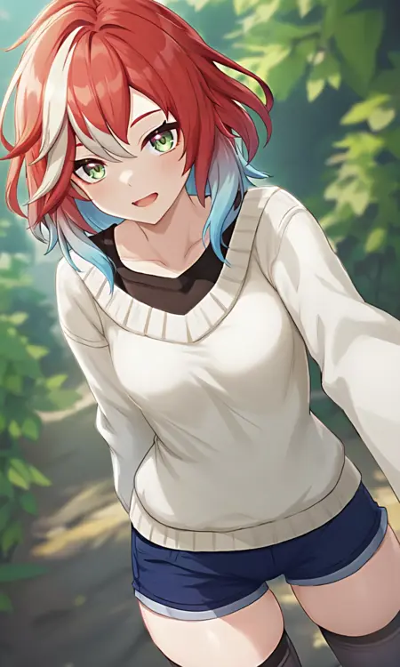 このスタイルは、現代のアニメガチャゲームやファンタジーゲームのビジュアルを参考にしており、明るい色使い、自然な肌色、細部までこだわった服のディテール、明確なアウトライン、髪や目に施された繊細な光沢効果が特徴です。このモデルは、特徴的なシルエットと高品質な3D照明効果を持つキャラクターを生成し、全体の美学は生き生きとして、ソフトで洗練されたまま保たれます。