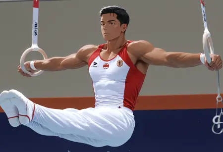 트리거 단어: Lsit 자세, 들어 올린 다리, 체조 링, 체조 링을 잡고, 팔을 벌림, 체조선수