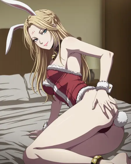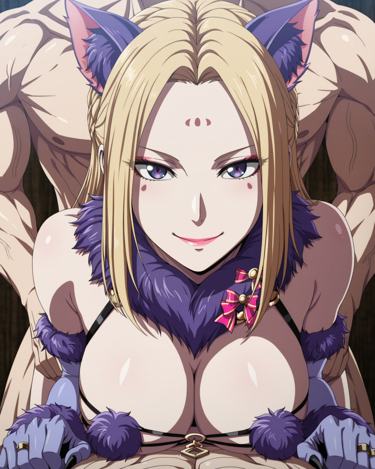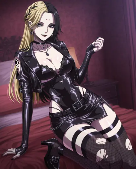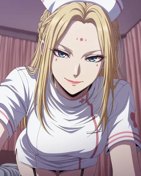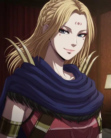 1girl, blonde hair, blue eyes, facial mark, forehead mark, french braid, lipstick, long hair,