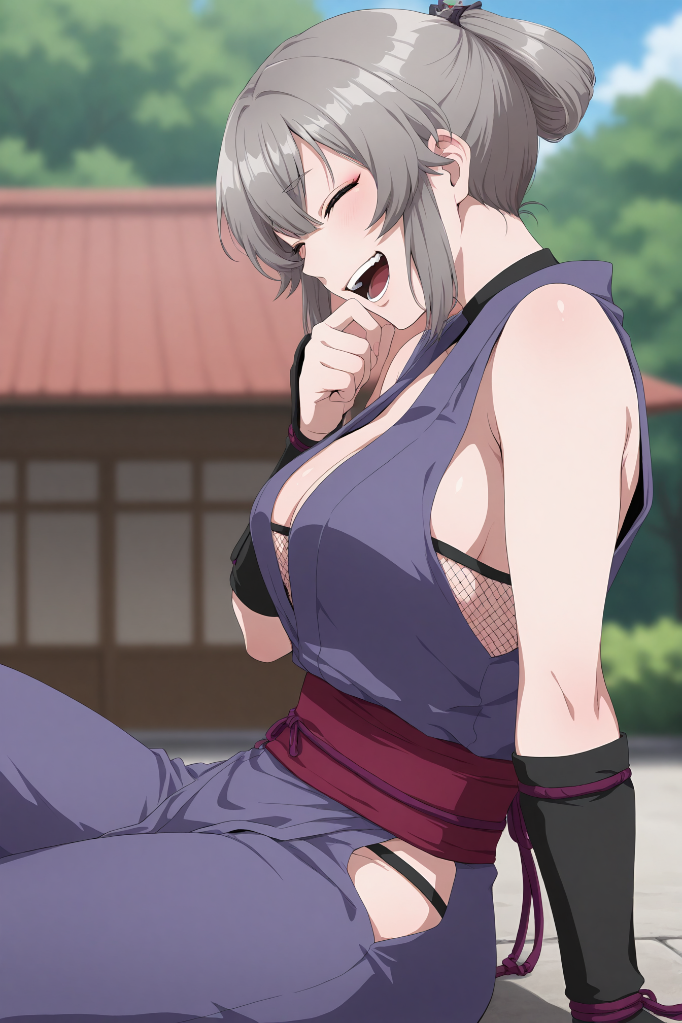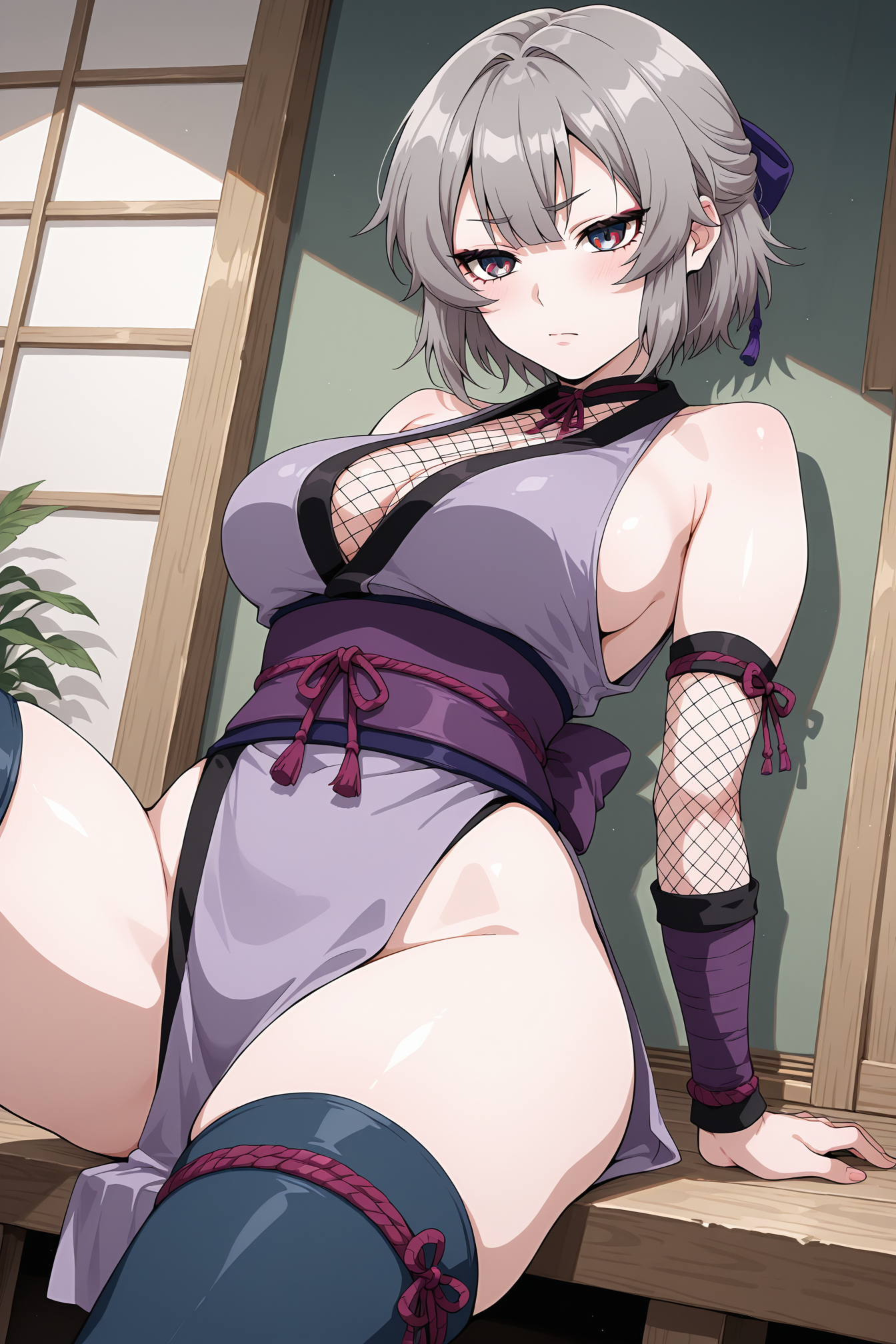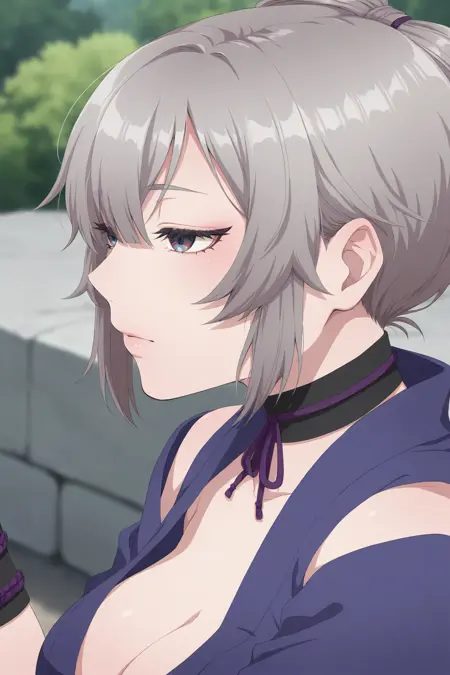 "kunoichi, 회색 머리카락, 속눈썹"을 추가하면 특징을 유지하는 데 도움이 됩니다.