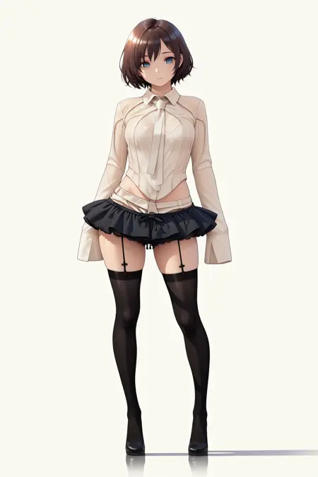 このLoRAは、透け感のある生地とクロスガーターを特徴とするエレガントなレースの衣装を再現します。