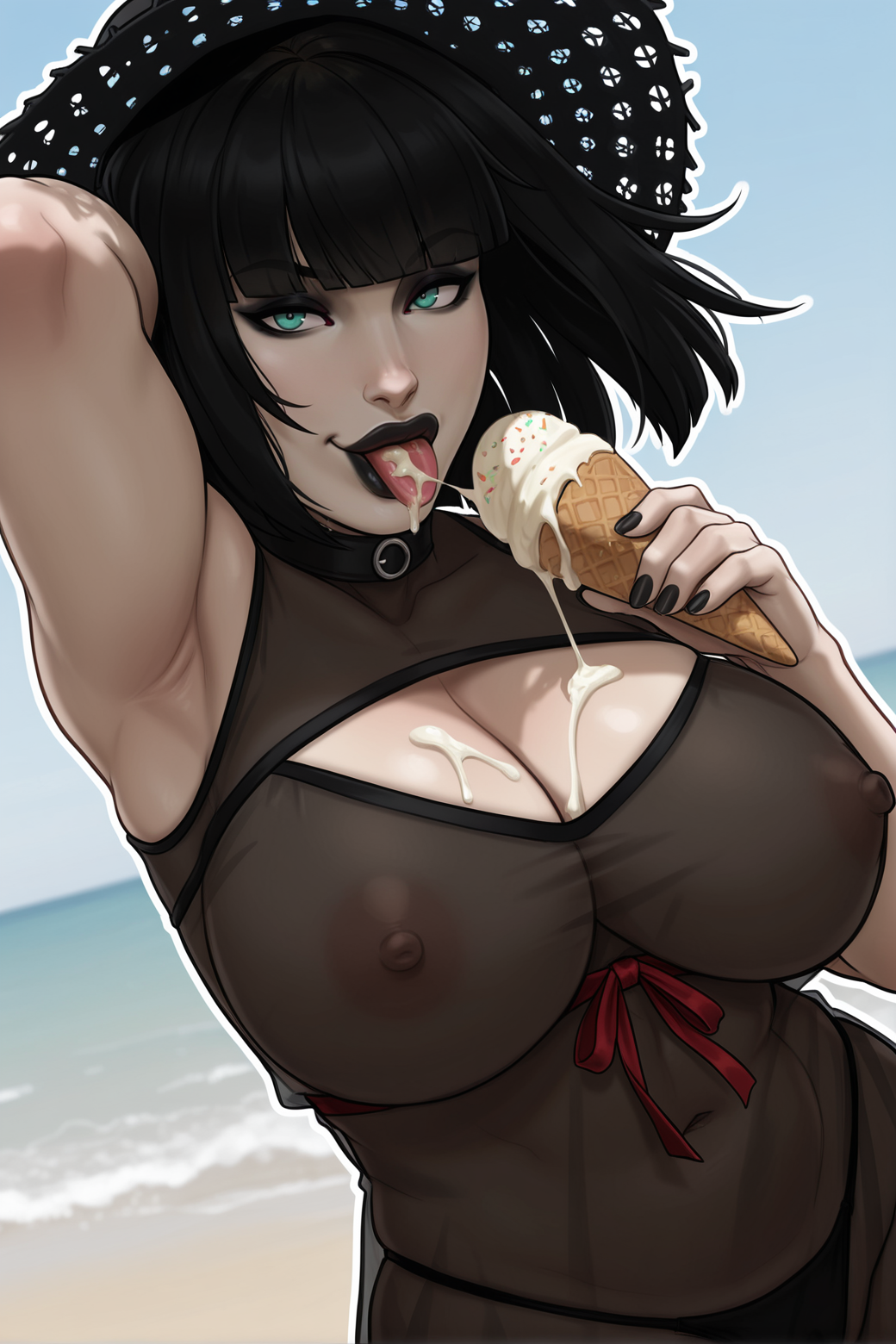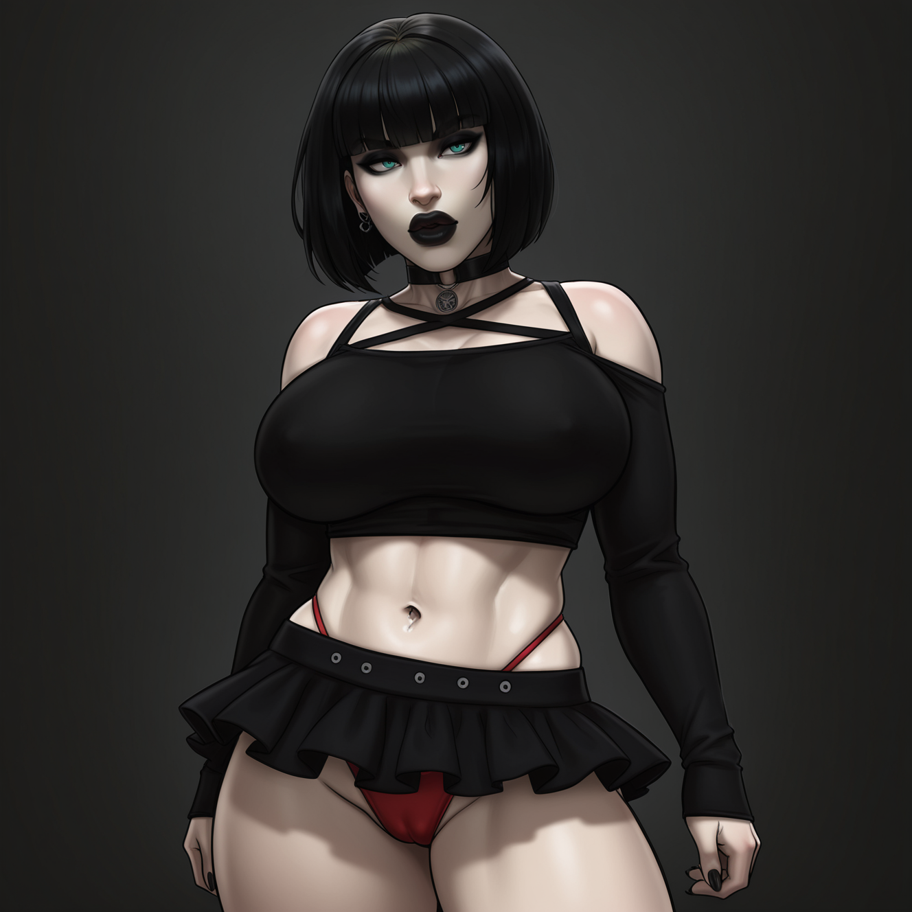 | 학습된 단어 | m4del1ne_zold4k, mature female, solo, female, human, not furry, teal eyes, black lips, thick lips, eyeshadow, eyelashes, eyeliner, pale skin, black hair, straight bangs, 5 fingers, black nails, voluptuous, big breasts,복사됨! buzz cut, high ponytail, long bangs,복사됨! goth, fully clothed, midriff, skimpy, skirt. red thong, choker, camel toe,복사됨! |
