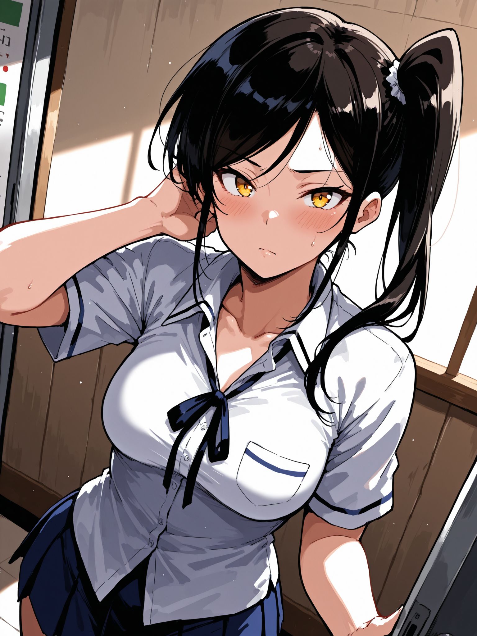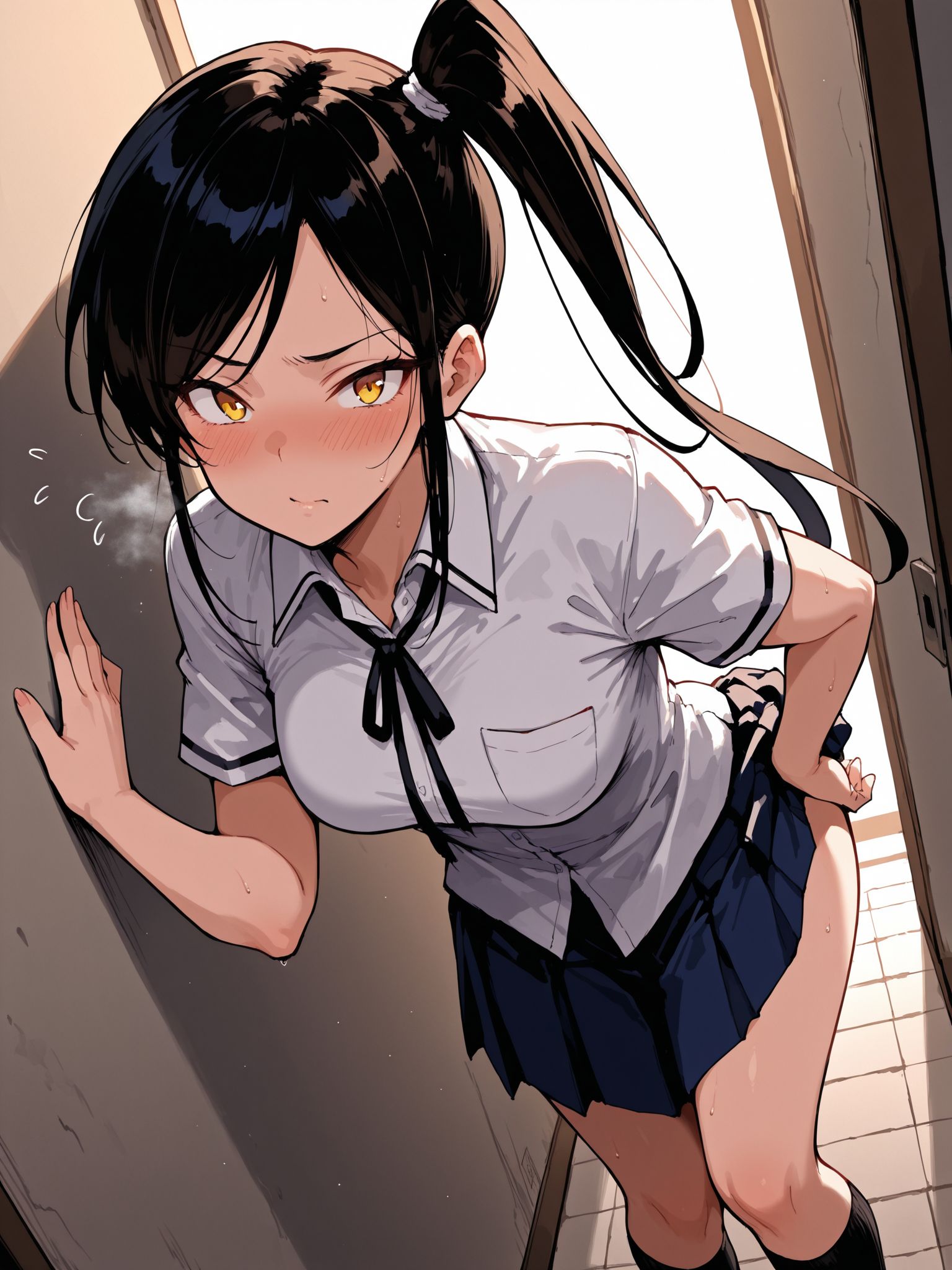 honnodollsrina,side ponytail,medium breasts,school uniform,short sleeves,pleated skirt,kneehighs,