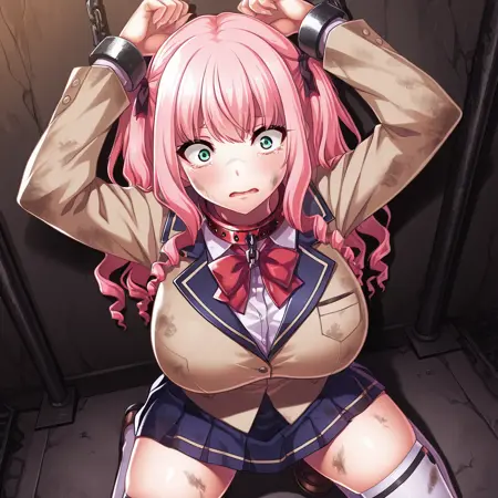 追加プロンプト: 赤いカラー、金属製の手錠、