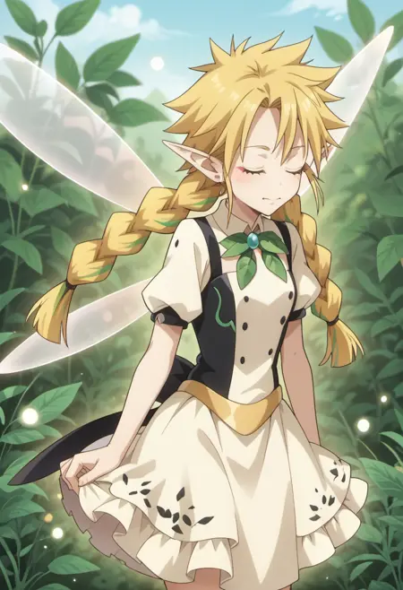 :ramiris、金色头发、尖耳朵、精灵翅膀、发辫、长发、黄色眼睛