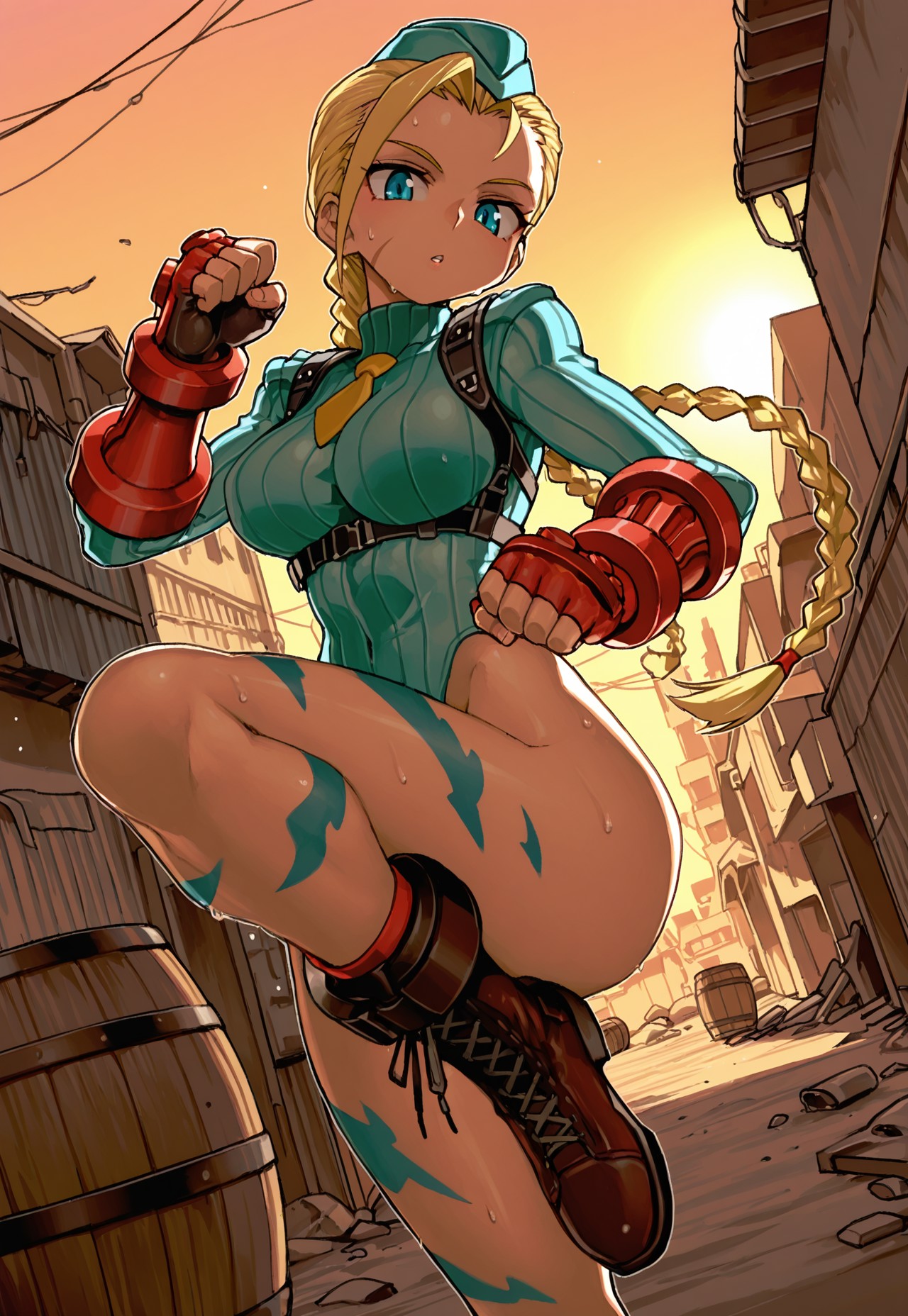 戦闘ゲームの女の子がダイナミックなポーズで描かれたアーティスト。