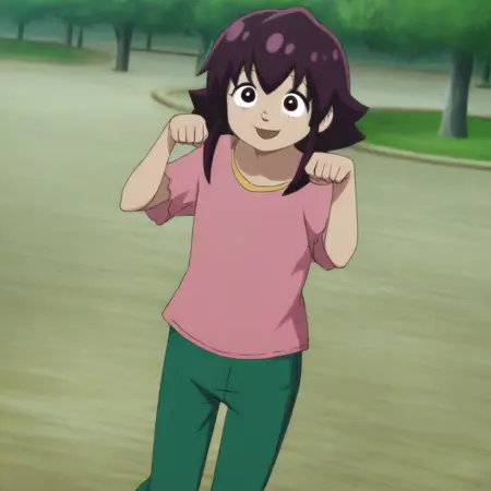 AIKO: aiko, aiko 눈, aiko 머리카락, 보라색 머리카락, 분홍색 티셔츠, 바지