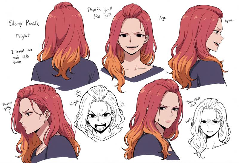 外观: 德西蕾,1个女孩,黑色眼睛,短发,红发,橙发,多色头发,长发