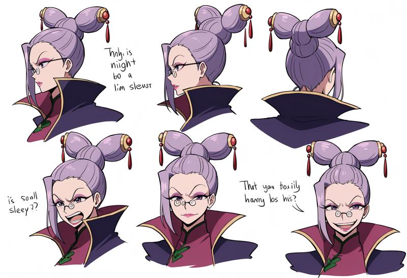外观: 奈廷,1个女孩,紫色眼睛,眼镜,发髻,单发髻,紫色头发,口红,妆容,发饰,发簪,夹鼻眼镜
