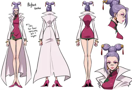 服装: 实验室外套,高跟鞋,珠宝,耳环,连衣裙,手镯,鞋子,中式服装,短裙,赤腿,中国裙,长腿,侧开衩
