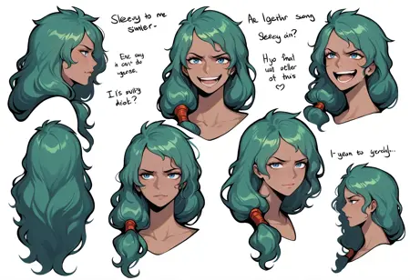 外观: 莉莉B,1个女孩,蓝色眼睛,绿色头发,长发,深色皮肤,深肤色女性