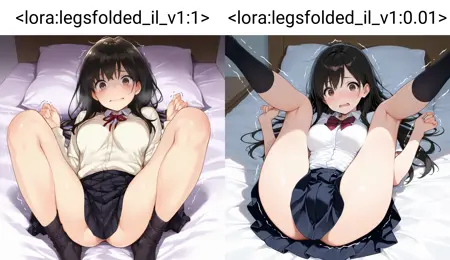 이 LoRA는 다리가 완전히 접힌 특정 이미지 구성으로 학습하여, 완전히 구부러진 다리를 가진 이미지를 생성하는 데 도움을 줍니다.