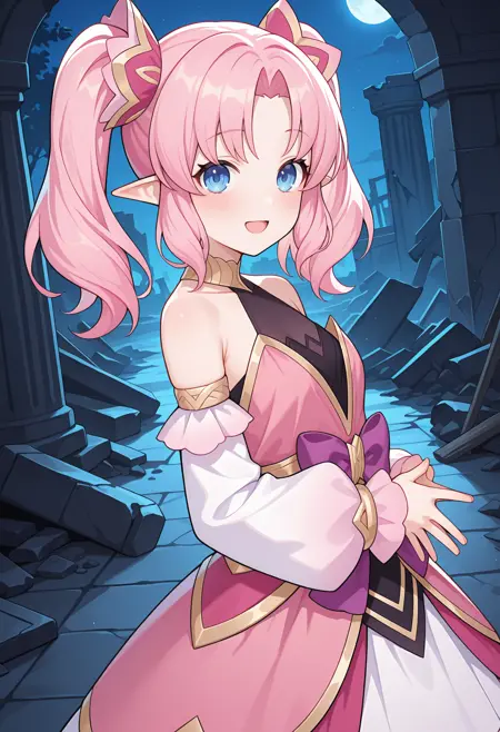 nptresta, 분홍색 머리, 긴 머리, 트윈테일, 파란 눈, 뾰족한 귀