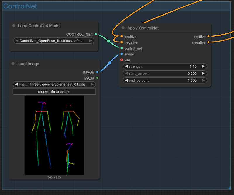 使用方法:加载Control Net模型,并通过Control Net节点应用骨架图像。我通常使用1.10的强度值。展示图中也包含了完整的ComfyUI工作流。