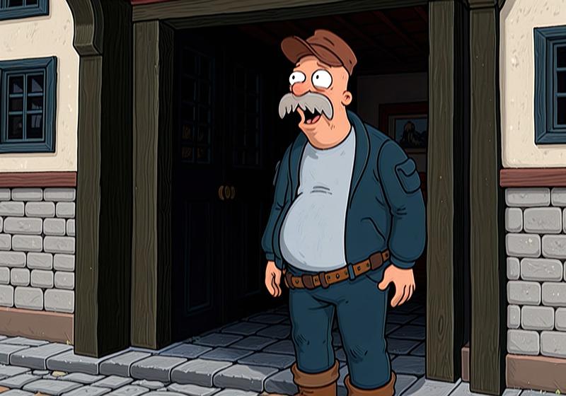 黑色燕尾服,粉色短发,白色衬衫,紫色领结,黑色鞋子,裤子上有紫色条纹。