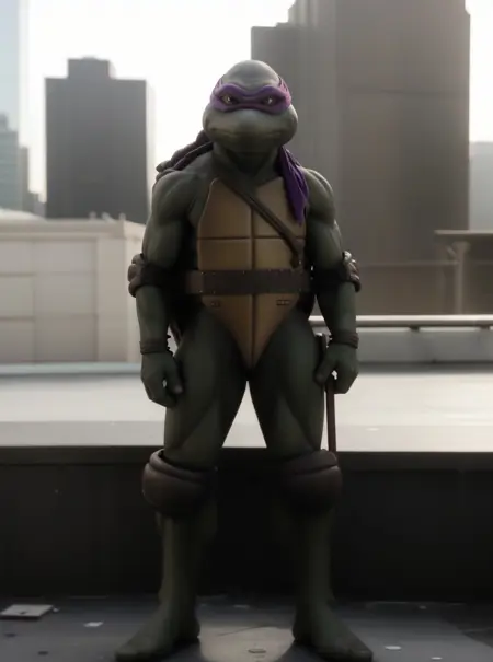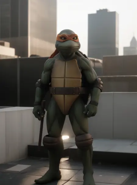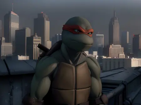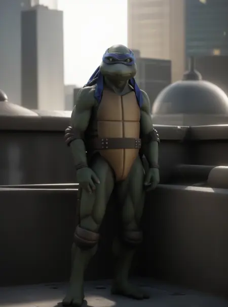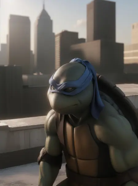 これは以前のTMNTタートルモデルのトップダウン再作成で、今や一つの便利なLoRAに統合されています。このモデルは写実主義を強く重視していますが、アニメやコミックスタイルにも比較的よく適用できます。このモデルは、約300枚の画像(異なる芸術作品・スタイルや、90年代初めのTMNT映画からの選ばれた映像フレーム)を組み合わせてトレーニングされました。十分にテストはしていませんが、トレーニング方法、推奨キーワード、これまでのパフォーマンスについてご説明します。グループ生成には苦戦し、デュオなら可能ですが、レオは以下の議論されるマスク関連キーワードを必ず必要とします。—(注:トレーニングデータには4人の兄弟が一緒に描かれた多くのシーンとタグが豊富にありますが、私は同時に2匹以上のタートルを生成したことがなく、たとえ生成できたとしても、すべて同じ姿になります。)