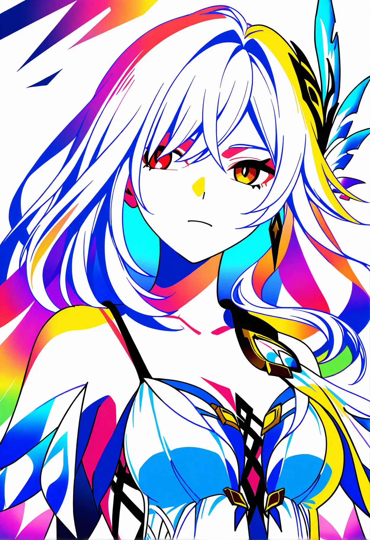 Skirk,HongJing Colored,colorful, 1girl, eyes opened,cdamisole,white background,upper body