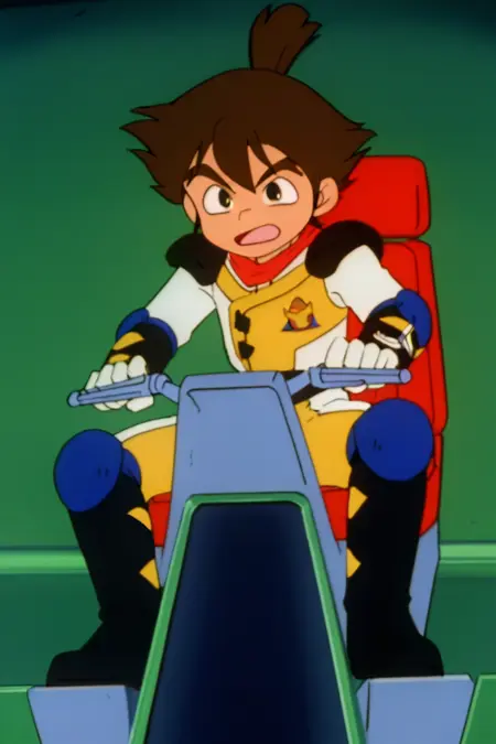 装備:男性、ヘルメット、肩パッド、赤いスカーフ、ボディスーツ、エルボパッド、手袋、ベルト、ボディスーツのズボン、膝パッド、ブーツ、屋外(都市/空/雲/建物/道路)、屋外(断崖/低木/夜空/星(空))、コクピット/赤い seat/ハンドル/フットペダル