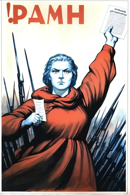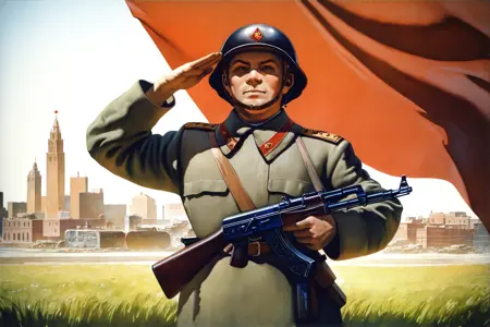 このモデルは、ソ連ポスター風のアートスタイルに特化したLyCORISです。重みが低いとモデル本来のスタイルに近くなり、重みが高いとポスター風のスタイルに近づきます。