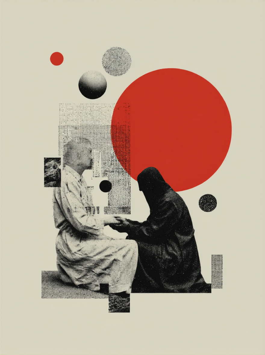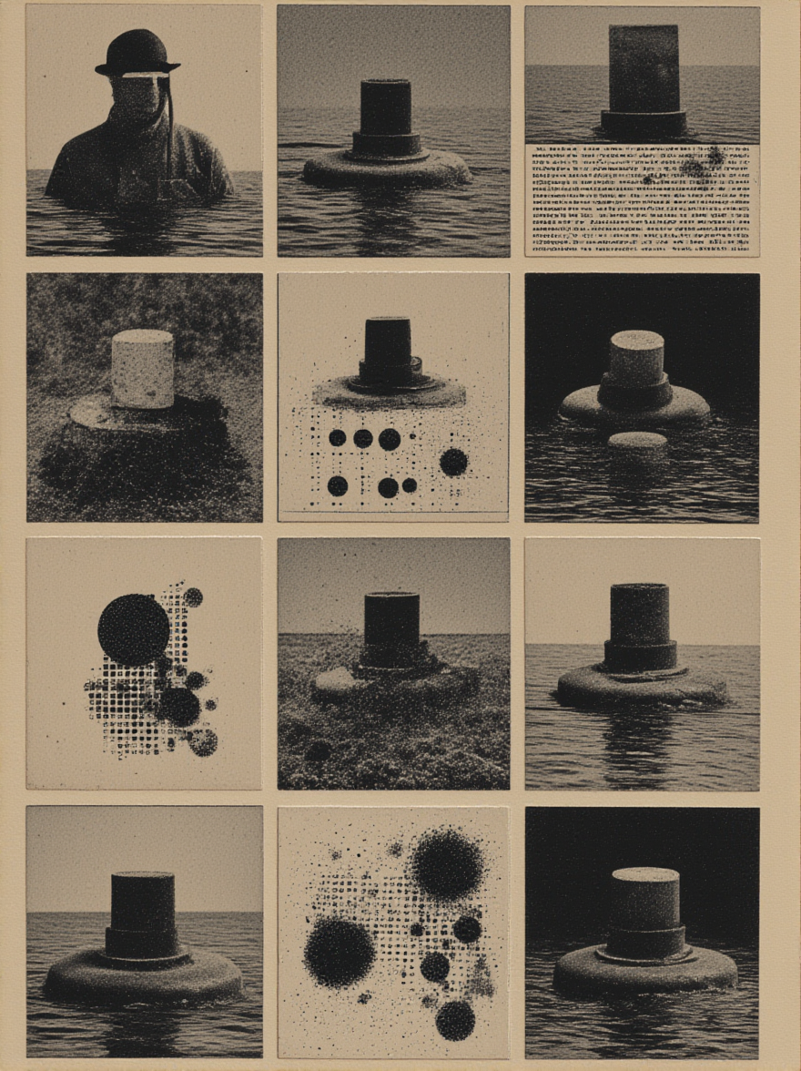 무거운 기하학적 영향을 받은 현대적 미니멀리스트 콜라주. 제가 만든 Midjourney 작품을 기반으로 합니다.