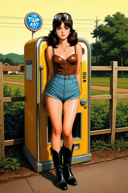 프로 팁: Vintage Pinup, 70~80년대 텍스처, 비ン티지 펄프 아트, 광택 있는 펄프 아트 및 Adetailer(필요시) 사용