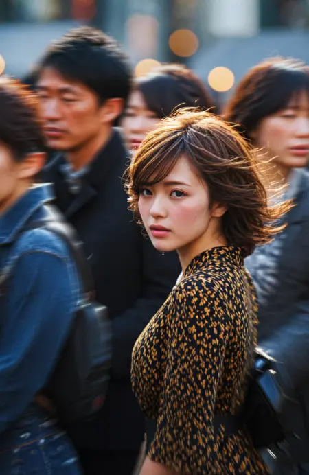 群衆の中で彼女を見つける、現実離れしたその一瞬を捉えようとするLoRA。視線が交わり、その脆いつながりの中で、彼女はすでに去ってしまっていることに気づく――二度と会うことはない。