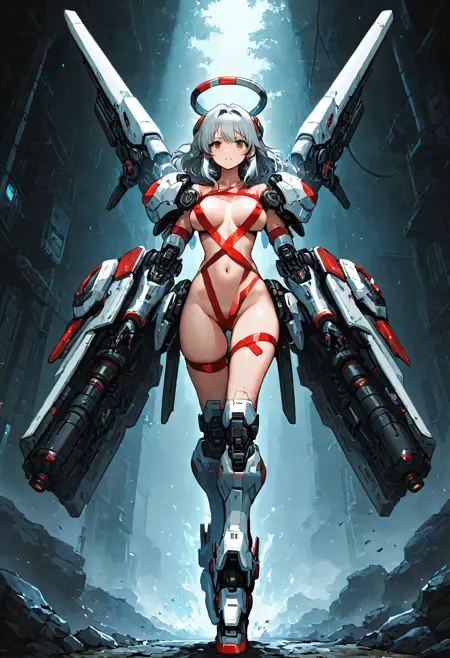 mechanical halo, mechanical horns, mechanical ears, mechanical tail, mechanical wings, head wings,