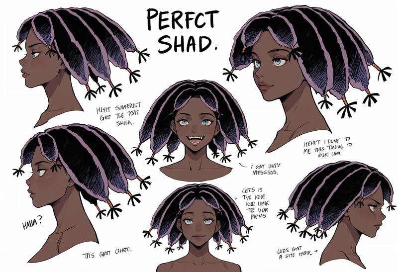 外观: 1个女孩,蓝眼睛,深色皮肤,紫色头发,脏辫,黑发,深色皮肤女性,非常深的肤色