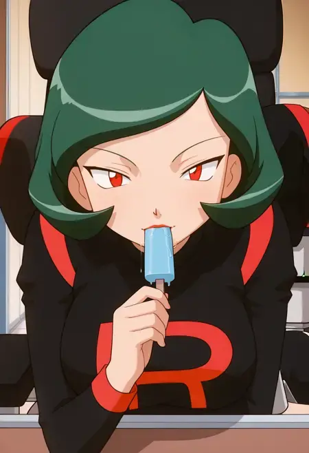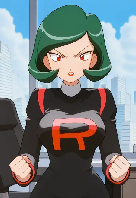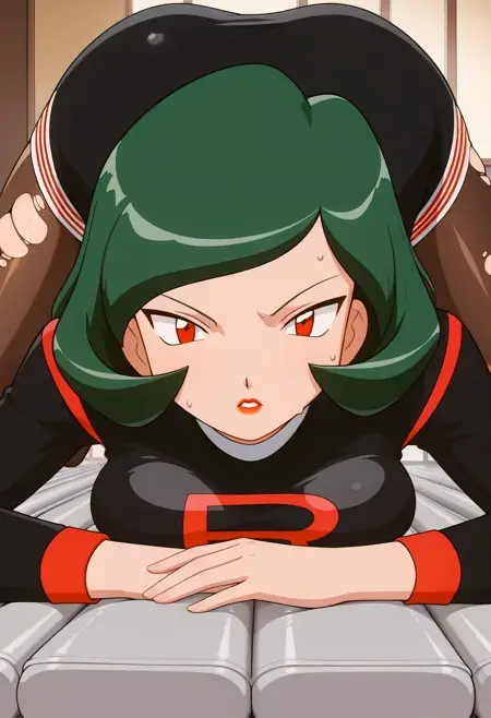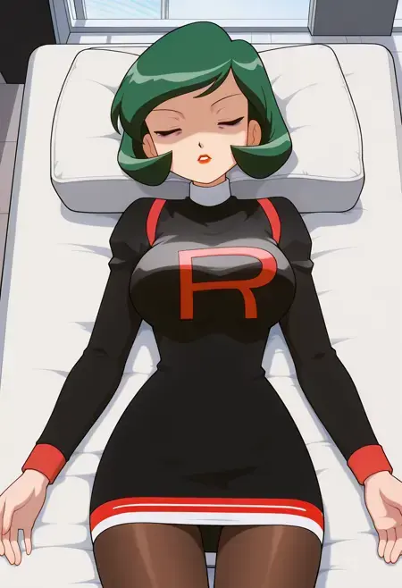 팀 로켓, 짧은 드레스, 검은 드레스, 터틀넥, 갈색 팬티호스, 하이힐, 검은 신발,