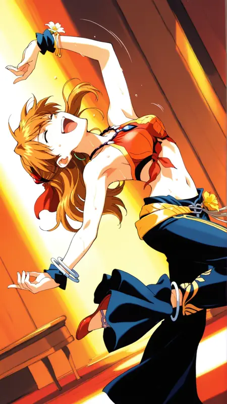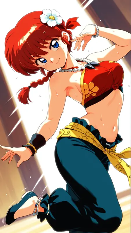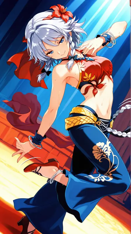 トリガー語: Barbara\(minstrel saga\)\(cosplay\),flower,jewelry, bracelet, midriff, bare shoulders, anklet, armpits, necklace, halterneck,