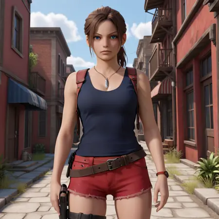 이 모델은 Resident Evil 2 비디오 게임의 캐릭터 클레어 레드필드의 유사한 외모를 생성합니다.