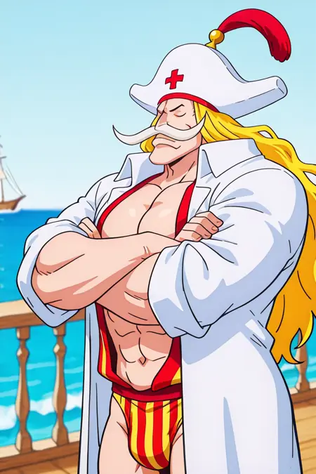 newgateop-9thmale focus, blonde_newgateop_9thmale-hair, white_newgateop_9thmale-facial hair, wide mustache, white-red_hat