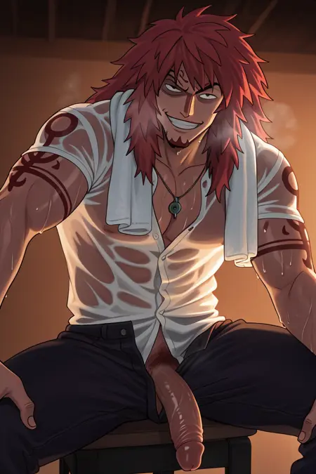 kalgaraop-4thmale focus, kalgaraop_4thmale-facial hair, red_kalgaraop_4thmale-hair, kalgaraop_4thmale-tattoo