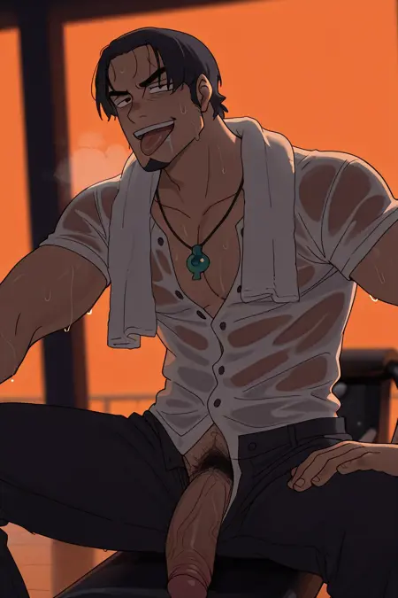 rayleighop-8thmale focus, RayleighOP_scar across single eye, rayleighop_8thmale-facial hair, white_rayleighop_8thmale-hair, black eyes
