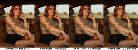 qwen-edit-skin LoRA는 Qwen/Qwen-Image-Edit-2509 기본 모델의 특수화된 미세 조정 버전입니다. 기본 모델은 다중 이미지 편집과 단일 이미지 일관성 유지, 특히 개인의 신분을 유지하는 데 뛰어난 능력을 지닌 다목적 이미지 편집기입니다. 이 LoRA는 그 기반 위에 구축되어 인간 피부의 미세한 특징을 특히 다루며, 원본 생성물에는 없을 수 있는 세부 사항과 실감도를 추가합니다.
