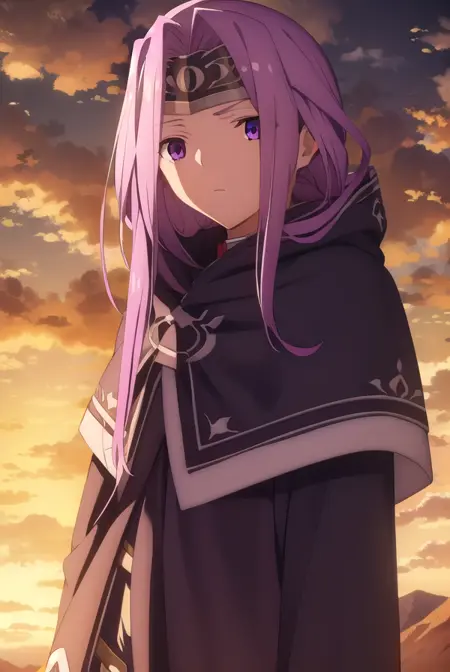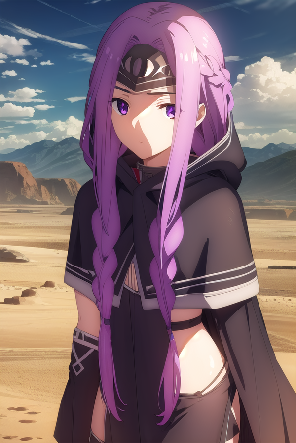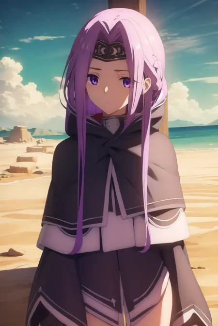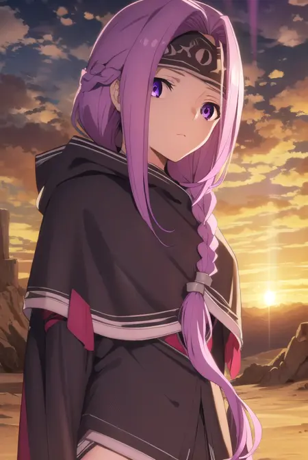 medusa lily, medusa \(fate\), long hair, (purple eyes:1.1), purple hair, sidelocks, braid, braided ponytail,
