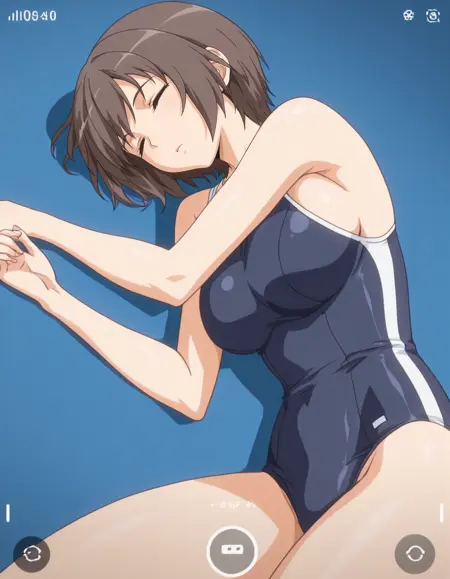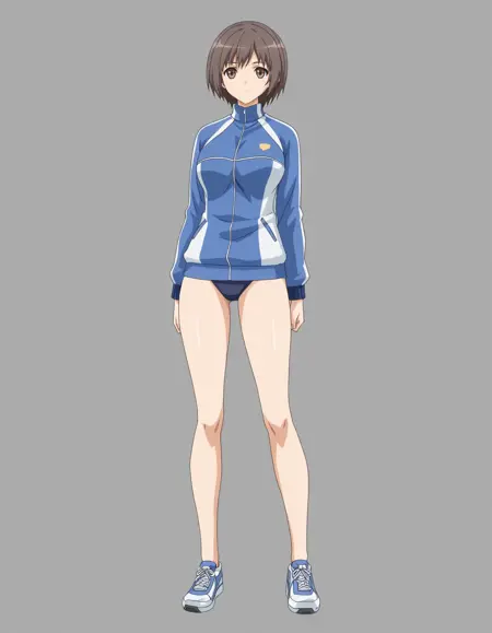mai_ks3,mai_yuuho3,short_hair,brown_hair,brown_eyes,blue_track_jacket,one-piece_swimsuit,sneakers
