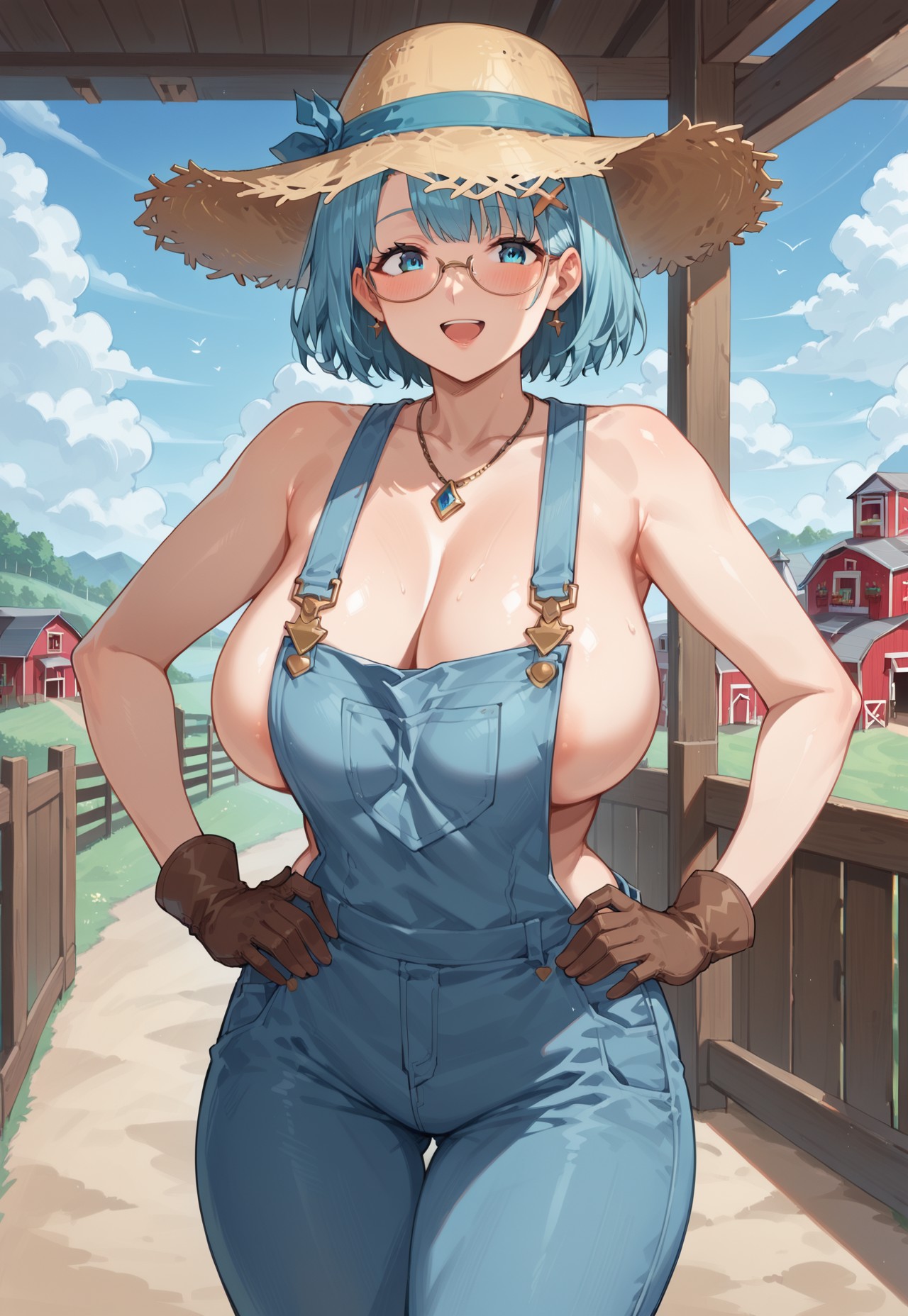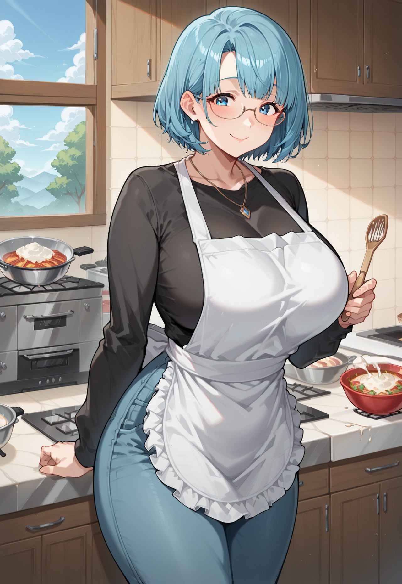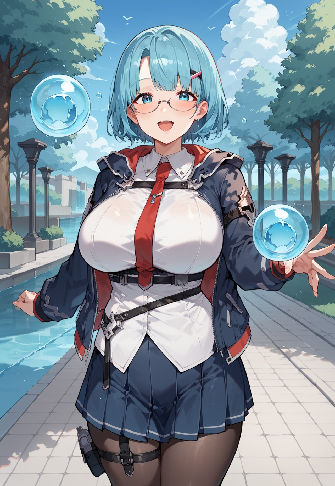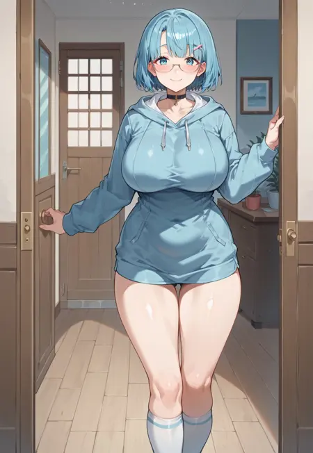 Mika_CZN, 蓝色头发, 短发, 蓝眼睛, 眼镜, 刘海, 发饰,