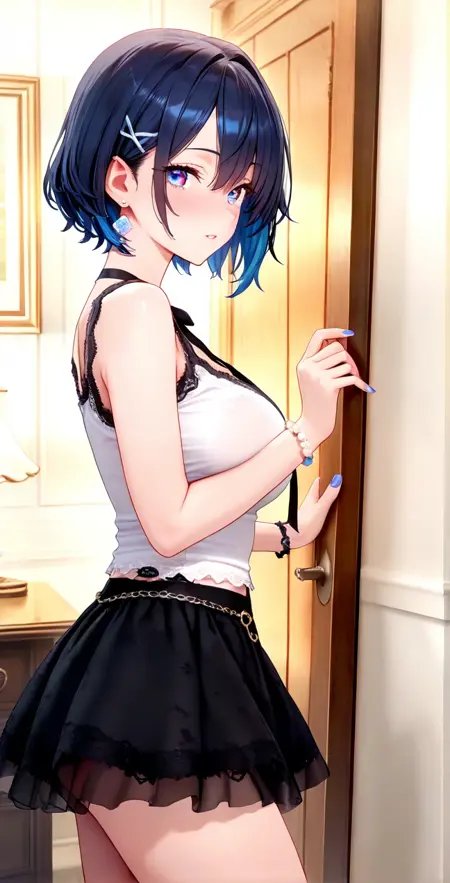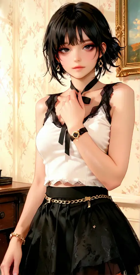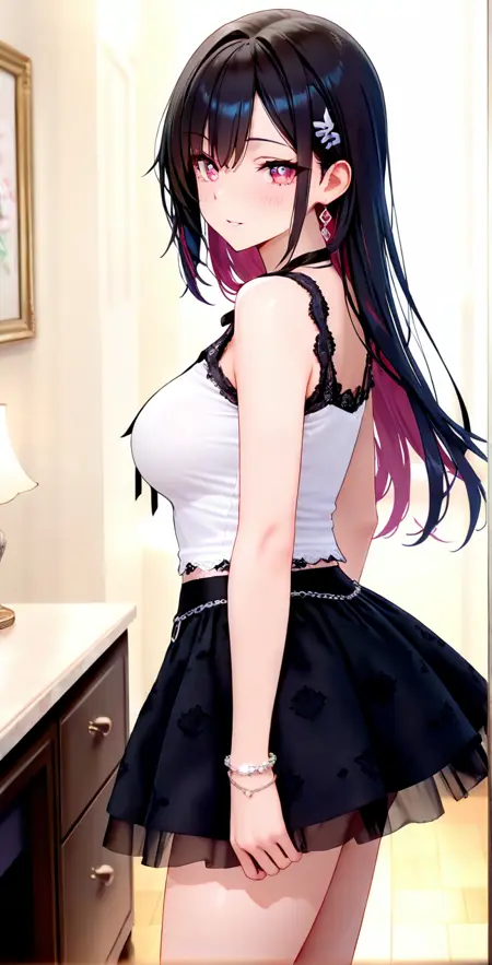 camisole_s, skirt, black skirt, jewelry, bracelet