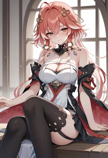 :changli (wuthering waves),长发,双色发,多色发,粉发,白发,黄眼