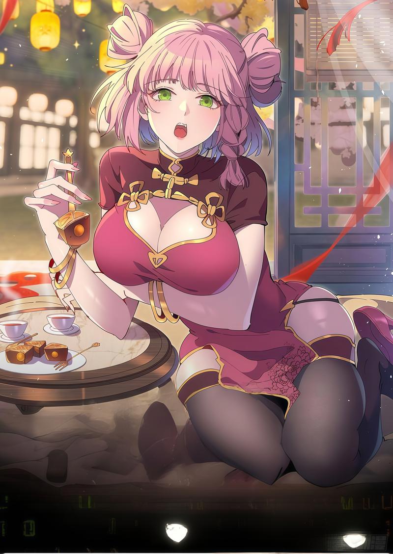 | 학습된 단어 | YY, 1girl, solo, pink hair, short hair, double bun, 1braided hair, green eyes, huge breasts, burst, bursting breasts,cleavage, white shirts, short shirts, midriff, navel, skirt, short skirts, pleated skirts, belt , lock belt, necklace, wet, underboob, overhang shirts , no bra복사됨! |
