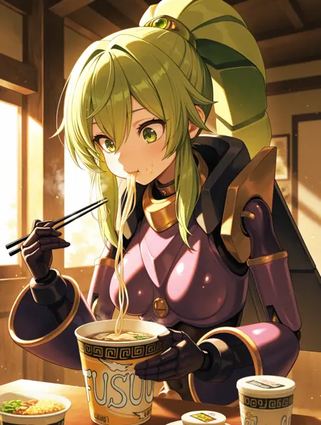 标签(服装):发饰,金色金属项圈,黑色机械短披风,紫色金属背心,黑色紧身衣,紫色金属袖子,机械臂,紫色金属腰带,粉色髋部护甲,紫色金属短裤,机械腿,紫色高跟鞋
