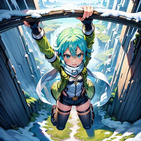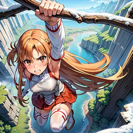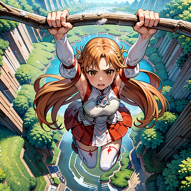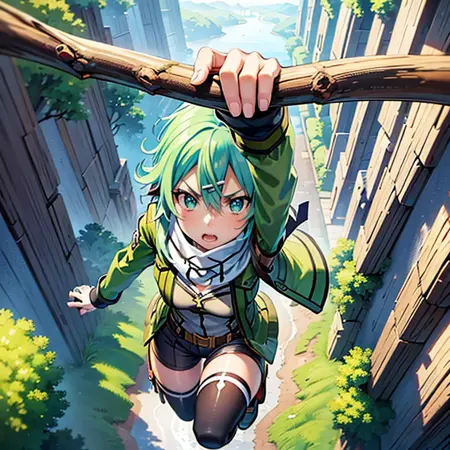 Additionally, when using a favorite character's Lora, a strength above 0.75 often results in images where the character's feet are touching the ground while hanging from the branch, so adjusting the strength below 0.7 might be better. Enjoy this Lora by using the trigger words "OneHand" or "TwoHand" to choose whether the character is hanging with one hand or two.