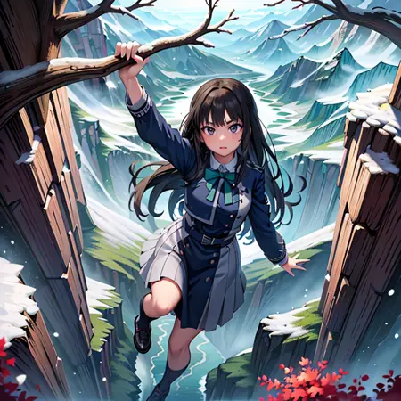 Originally, I wanted to create a Lora that could hang anywhere, over the sea or a bottomless valley, but this seemed to ruin the sense of depth, so I've settled on mountain cliffs.
