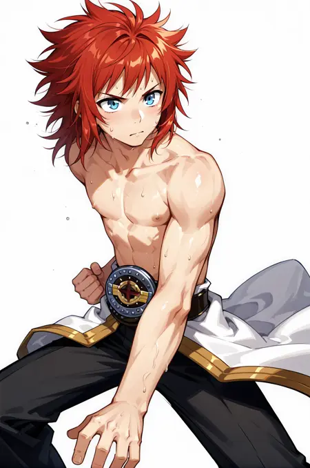 prompt: champROMale, sleeveless coat, gloves, open clothes, championship belt, black pants, shoes,